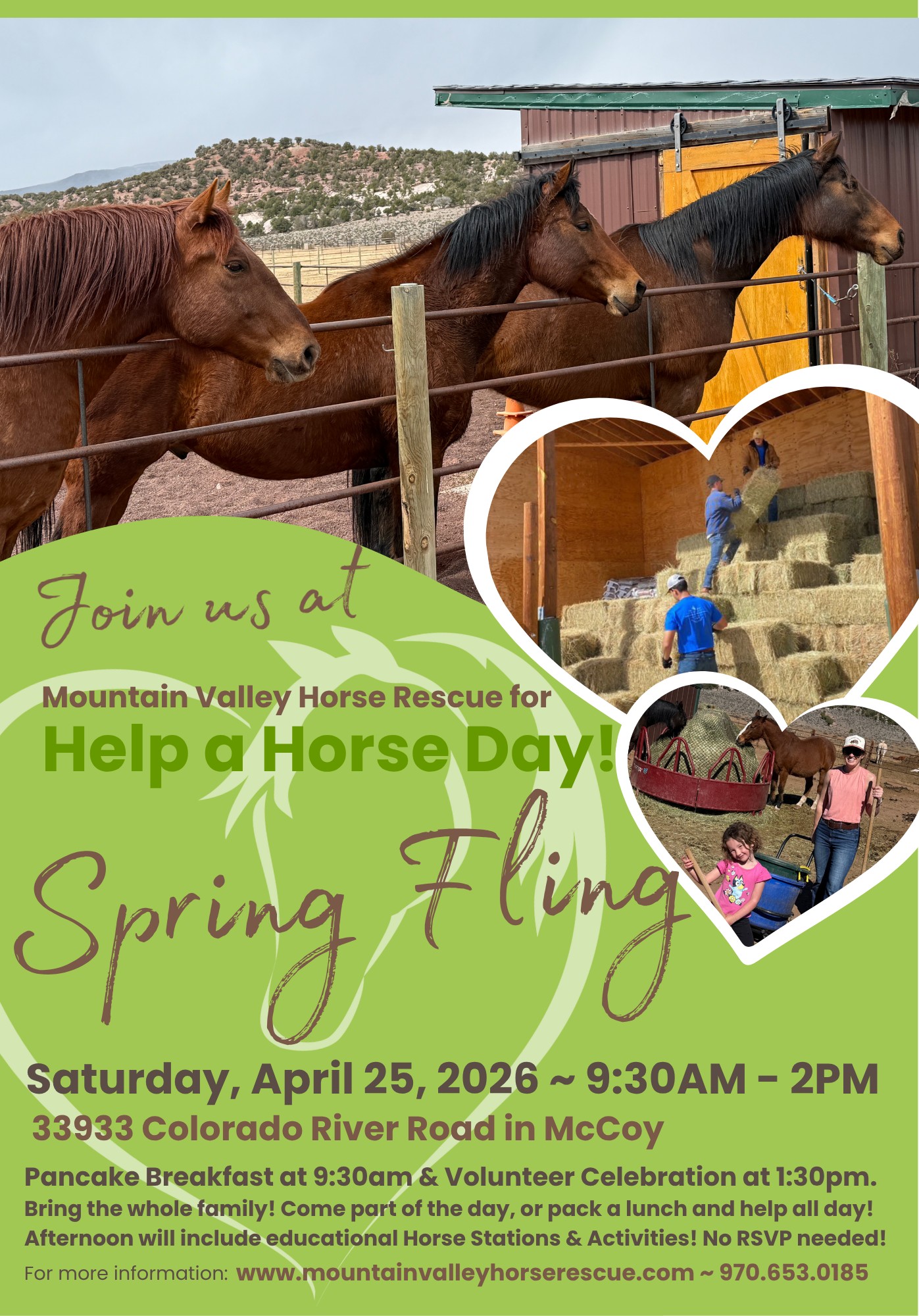 | | 2026 Events - Save the Date! - Saturday, April 25th ~ Help a Horse Day, Volunteer Spring Fling & Open House, McCoy