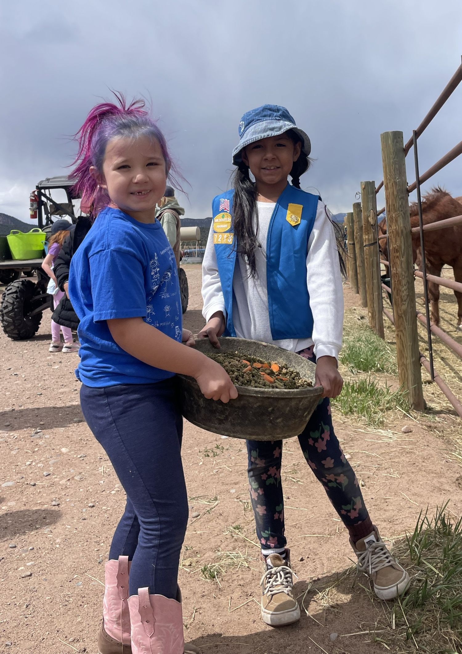 | | Thank you, Eagle County Girl Scouts Troop 57213! Last week a troop of six Eagle County girl scouts came to the rescue to learn how to take care of the horses. During their visit they cared for the horses by mucking corrals, feeding the horses who get supplemental meals throughout the day, and learned about the horse's stories. In the afternoon they gave the horses extra love through grooming and leading. To receive a new badge, they were assigned an "Action Project" to help educate others about caring for animals. To do this the girls partnered up, chose their favorite rescue horse, and wrote a short paragraph about their favorite rescue horse explaining to the public what that horse needs and what we at the rescue do for that specific horse. The troop plans to create and hang posters that highlight the rescue horses they chose to write about. The posters will be shared within the community. Thank you Eagle County Girl Scouts for your help and care towards the horses! |