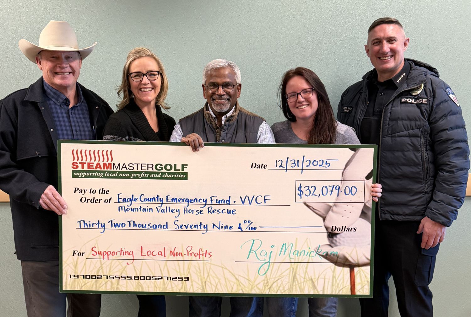 | Thank you Steam Master! MVHR is grateful to have been selected by Raj Manickam and the Steam Master team to be one of the three recipients of their 18th Annual Charity Golf Tournament, which took place on October 1, 2025 at Sonnenalp Golf Course in Edwards. We are humbled to be standing next to the other amazing nonprofits who benefited from this event; Vail Valley Charitable Fund and Eagle County Emergency Responders Fund. It was a beautiful day with 22 teams in the tee off scramble and a record amount of funds raised! Each nonprofit took home $10,693.00! Thank you Raj and Steam Master for supporting the MVHR Rescue Herd! |