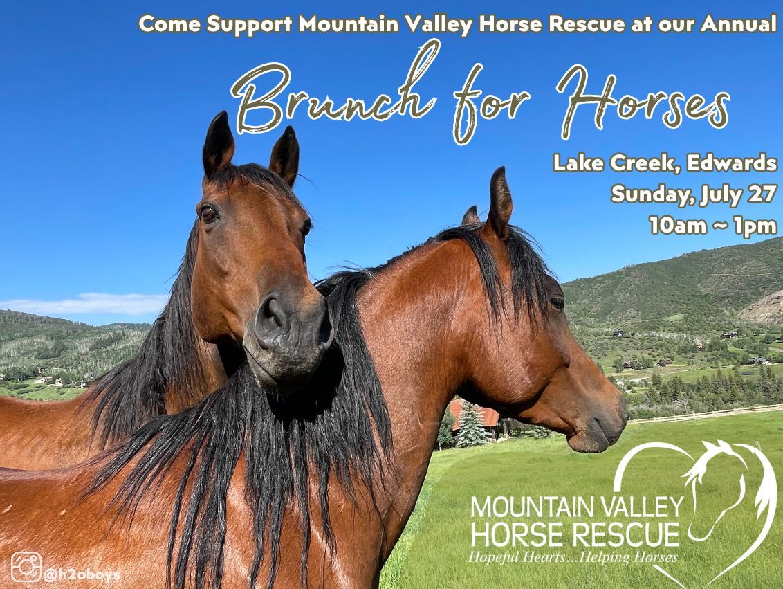 For more dates, click below! No need to RSVP, just come on out! After attending the Volunteer Training, you’ll be able to return to the Rescue as your schedule permits to help with chores and spend time with the horses. More information about MVHR's Volunteer Program - click HERE. | | | | Volunteers! Mark your calendars for Hay Day, September 13!!! This annual open house event is our largest every year, introducing hundreds of people from our community to the ranch and the horses. We'll need LOTS of Volunteers to make it a success! Plan to join us to help out with this fun event! Email volunteer@mvhr.net if you can help! | | | | | | Summer Break Day Camps! MVHR is excited to be offering ages 6 and up the opportunity to spend Summer with horses. Registration is still open, and there are spots left in August. Kids can sign up for Glamour Camp, Hope Liberty Camp or Horse Heroes Day Camp to spend the day with horses at the ranch! | | | | | | | | Mini Horse Heroes! Mini Horse Heroes for Fall are now Open for registration. Come to the ranch for a fun program for preschoolers, age 3-5. We spend time with the rescue herd, learn about horses, groom & lead horses and finish with a ride! Don't miss out, this program fills up fast! | | | | | | | | | |  | Upcoming 2025 Events - Sunday, July 27 - Brunch for Horses in Lake Creek, Edwards NEXT WEEK!