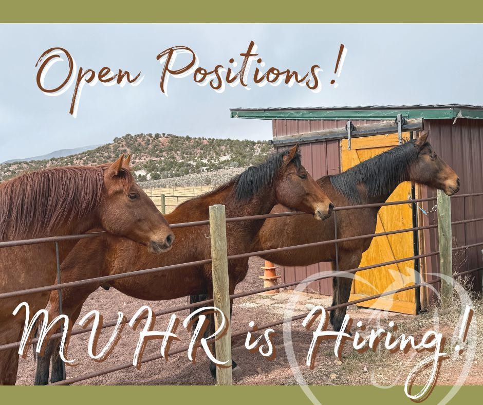 | MVHR is Hiring! We have a variety of positions available. Do you have a deep compassion for horses and the ability to communicate with and work well with others? Then check out the following positions! - Horse Trainer, Full time/Part time, year-round