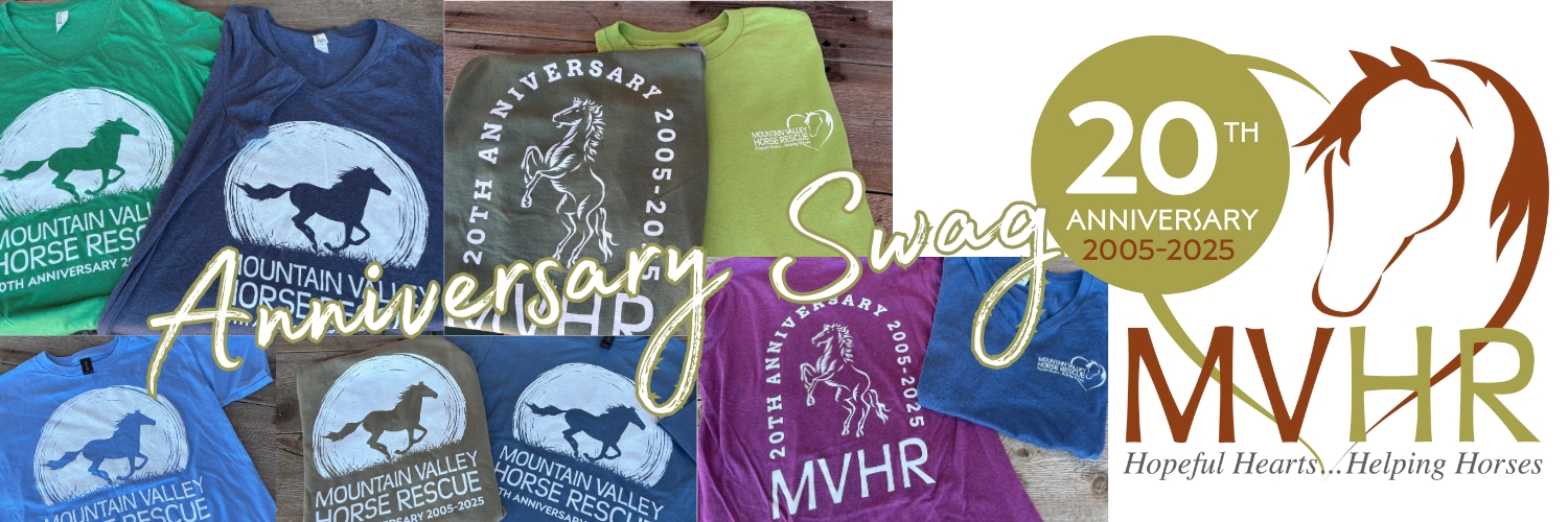 For more dates, click below! No need to RSVP, just come on out! | | | | | | MVHR's New Video In case you missed it in last month's newsletter. MVHR is excited to share MVHR's Brand New Video. Join us in reflecting on 20 years of Journeys of Hope for Horses & People - click on the image to watch! | | | | Other Ways to Help A this Year End! Donating to help the horses can be done in many different ways! In addition to cash, check and online donations, volunteering your time and sharing MVHR's mission with others, read on to learn about some other ways to make a huge impact to the sustainability of MVHR for future generations to come! | | Shop at Kitchen Collage in December! Our amazing friends at Kitchen Collage in Edwards will donate a portion of their proceeds to the herd again this Holiday Season. Shop at Kitchen Collage in December for your gifts and you help the horses! Have Amy and her team help you find the most amazing items, as they have something for everyone you are shopping for. Shop in their store in Riverwalk in Edwards or Online! Thank you Amy & the Kitchen Collage team for your generosity this Holiday Season, thanks to you and your shoppers we are able to help horses recover and find their next chapter in life. | | | | | | | | These are MVHR's Limited Edition 20th Anniversary T-Shirts - get yours today online or ask at the ranch! NOW with 20% off through Nov 30! USE CODE "20YEARS". These are only available for this one run, so don't miss out. | | | | MVHR Brokerage Account with Edward Jones Did you know MVHR has a brokerage account that you can donate stock to…and that you can make a gift to the horses this way? Donating stocks offers benefits for both you and MVHR. We are so grateful for the donors that have already committed to doing so. For more information on how to donate to our account with Edward Jones, contact your broker or email marleen@mvhr.net. | | | | MVHR Endowment Fund at YVCF As we reach year end, please consider donating to the MVHR Endowment Fund at the Yampa Valley Community Foundation. Your contribution to the MVHR Endowment Fund provides support for horses today, tomorrow and beyond, truly ensuring all MVHR horses have the care and love they need throughout their lives and for generations to come. If you'd like to learn more about donating to the Endowment Fund, please click HERE. | | | | Planned Giving Create your legacy by making a planned gift to MVHR. Through a planned gift, you will be a part of making an everlasting difference in the lives of rescue equines long into the future. A hundred years from now, you will have an impact on the care of horses in need. Lend your Hopeful Heart to Helping Horses by making a legacy gift to MVHR today! Click HERE for more information. | | | | You can also visit our Other Ways to Help resource page to learn about more ways to help MVHR anytime of year. Looking for MVHR swag? Our MVHR Webshop has several items you can support the horses and show it off to your community! From all of us at Mountain Valley Horse Rescue, thank you for your continued support! | | | | | | Upcoming 2025 Events - Thursday, December 4 - Eagle County Gives Rally at CMC 5pm-8pm