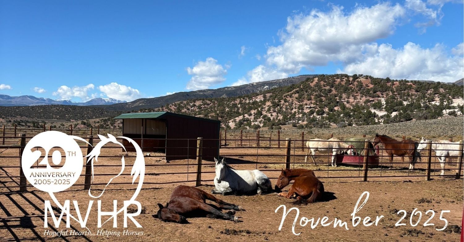 | | It's Napping Season for the Horses... ...at the ranch during the sunny days, warming up for the colder nights. While these horses wait to graduate from their Journey of Hope, they enjoy their time together with plenty of hay and love. However it is not nap time for MVHR Staff. Not only do we continue programs through the end of the year, but staff has also been working hard to plan for new intakes in need of a safe place to land before the real winter starts. It's the time of year when our phones are the busiest. Over 18 horses have asked for help as soon as possible, just in the last few weeks, and we are hoping we can help them all. We are grateful for the continued increase of participation in our community volunteer days and training, it is so wonderful to see the helping hands at the ranch, making our work possible as we head into winter over capacity. Your support is critical this time of year so MVHR can continue it's mission to help at-risk horses find their Journey of Hope and plan for the year ahead. As we enter the season of Giving, please consider making a Colorado Gives Day donation to the MVHR Herd, now through Tuesday, December 9th. Find the details below! Another fun ranch event is coming up on Saturday, December 13th! Visit the horses at the ranch for Santa's Sleigh & Merry Neighs from 10am-12pm. This is a Free community event, and we can't wait to see you! As always, we invite you to visit the ranch if you are in the area this Holiday Season, the horses would love to see those who make it possible for them to have their happy endings. | | Continue reading for more details and updates from MVHR! | | | | MVHR Horse Updates! With so many horses needing MVHR's help, it is very exciting to have adoptions finalize so we can bring in the next Journey of Hope. Wilma found her forever home with Rhonda and Kip stole the hearts of Tammy and Tim, both adoptions have now finalized. Lucy left for her adoption trial last week with a wonderful family on the front range, and recent intake George will also be heading out soon. We welcomed two handsome boys, Larry & Blaze, two 20 something geldings with eventing histories looking for an easier retirement life. They are as sweet as can be, and we look forward to learning what they might be up for in their next adventure. Three of the Four horses who spent the Summer and Fall at Summit Valley Horse Center (SVHC) have returned to the ranch; Hammer, Cricket & Boomer are in quarantine and will integrate back into the herd in a few weeks. Ernie remains with SVHC, as one of their volunteers fell in love with him and they will care for him this winter. Thank you SVHC for caring for this crew this Summer! In addition, two new intakes will come to the ranch in the next few days, and a couple of more will be made possible by nearby foster homes. We're doing everything we can to fit horses in before true winter gets here, and with your ongoing support we can stretch some at this critical time of year! Interested in your next horse, or know someone who is? Amazing horses are waiting for their next adventures! Come meet Lucky, Frankie, Barbie, Buggs, Juniper, Daci, Zephyr, Dancer, Cricket, Golie, Shadow, Darcy, Ernie, Babe, Latigo, Huckleberry, Hammer, Rebel, Boomer, Big, Freddie, & Belle! Adoptions make it possible for us to help more horses with next chapters of their own, and for you to have an amazing horse in your life! A full list of the Current Herd can be found by clicking below! | | | | | | | | Colorado Gives Day is Tuesday, Dec. 9 ...it’s the Day that Keeps on Giving. Help us start a thundering herd of generosity. Today through December 9, every donation you make is boosted with a $1M+ Incentive Fund, Thanks to Colorado Gives Foundation and FirstBank. The more we raise, the bigger our share. Plus, if you set up a new monthly recurring donation, Colorado Gives Foundation will match! You can support MVHR's effort to find all horses in our care their very own happy endings in their Journey of Hope. Please give this Colorado Gives Day to make a difference in the lives of horses. Your support and generosity are appreciated now more than ever. The herd is counting on you! Thanks for your support of MVHR and for being a part of Colorado Gives Day. | | | | | | | | MVHR Community, Events & Programs | | | | | | The horses invite you to the ranch for Santa’s Sleigh & Merry Neighs on Saturday, December 13 from 10am to 12pm for holiday fun with the horses! Get to know the rescue herd and get your hands on the horses! Enjoy hot chocolate, treats, make crafts and have a great time! Bring the whole family! Spots are limited, so please RSVP! This is a FREE community event. There will be horses' stockings hanging & they'd love you to bring them a gift. | | | | Thank you Eagle River Brewing Company! On Friday October 24, Eagle River Brewing Company in Gypsum hosted "Beer for Horses". We had a wonderful time seeing so many of our supporters, meeting new friends and sharing MVHR's new video with the amazing crowd. The place was packed and thanks to all your Beer purchases, proceeds of $1000 were donated to the MVHR Rescue herd by the Brewing Company! Thank you for coming! | | | | Volunteer Opportunities! Save the Date, these are the upcoming Community Volunteer Days & Orientations! - TOMORROW!!! Saturday, November 15 - 9:30am - 12:00pm
