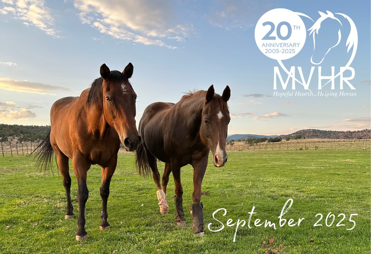 More information on these events will be shared in upcoming newsletters, our website and on social media! And we are working on even more events for this special 20th Anniversary Year! You can visit the event calendar on the website anytime! | | | | | | | | | |  | MVHR Anniversary Shirts! 2025 New T-Shirts in Amazing Colors! These are MVHR's Limited Edition 20th Anniversary T-Shirts for 2025 - get yours today online or ask at the ranch! All adults shirts are $25, and children's are $15. There are crew necks and slim cut V-neck options. These are only available for this one run, we will not be restocking these so don't miss out. | | | | | | Other Ways to Help All Year Round! Donating to help the horses can be done in many different ways! In addition to cash, check and online donations, MVHR has an Endowment Fund as well as an account with Edward Jones to accept Stock donations. More info click HERE. Other ways to help the horses is volunteering your time and sharing MVHR's mission with others, there are many other ways to make a huge impact to the sustainability of MVHR for future generations to come! Click HERE to learn more. You can also visit our Other Ways to Help resource page to learn about more ways to help MVHR anytime of year. Looking for MVHR swag? Our MVHR Webshop has several items you can support the horses and show it off to your community! From all of us at Mountain Valley Horse Rescue, thank you for your continued support! | | | | | | Contact Us Mountain Valley Horse Rescue 33933 Colorado River Road McCoy, Colorado 80463 970-653-0185 info@mvhr.net | | | | | | | | | | | |