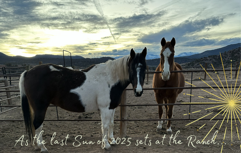 ...the Herd wishes you a Happy New Year! From all of us at Mountain Valley Horse Rescue, we'd like to THANK YOU for your generosity in 2025! Our work is possible thanks to MVHR's Wonderful Volunteers and Your Donations! We are excited to see what 2026 brings, as it is the Year of the Horse after all, and can't wait to share it with you. Hopeful Hearts, Helping Horses...Home. Wishing you a Fun & Safe New Year Celebration and a Healthy & Happy 2026! - The Rescue Herd, Staff & Board of Directors. Picture: Herd Representatives Boomer & Latigo |